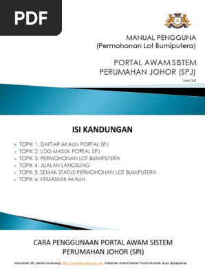 CARA PENGGUNAAN PORTAL AWAM SISTEM PERUMAHAN JOHOR SPJ 5. Portal e Rumah dibangunkan bagi memberi kemudahan kepada rakyat negeri Johor dalam memohon RMBJ Lot Bumiputera dan juga Projek Perumahan.
